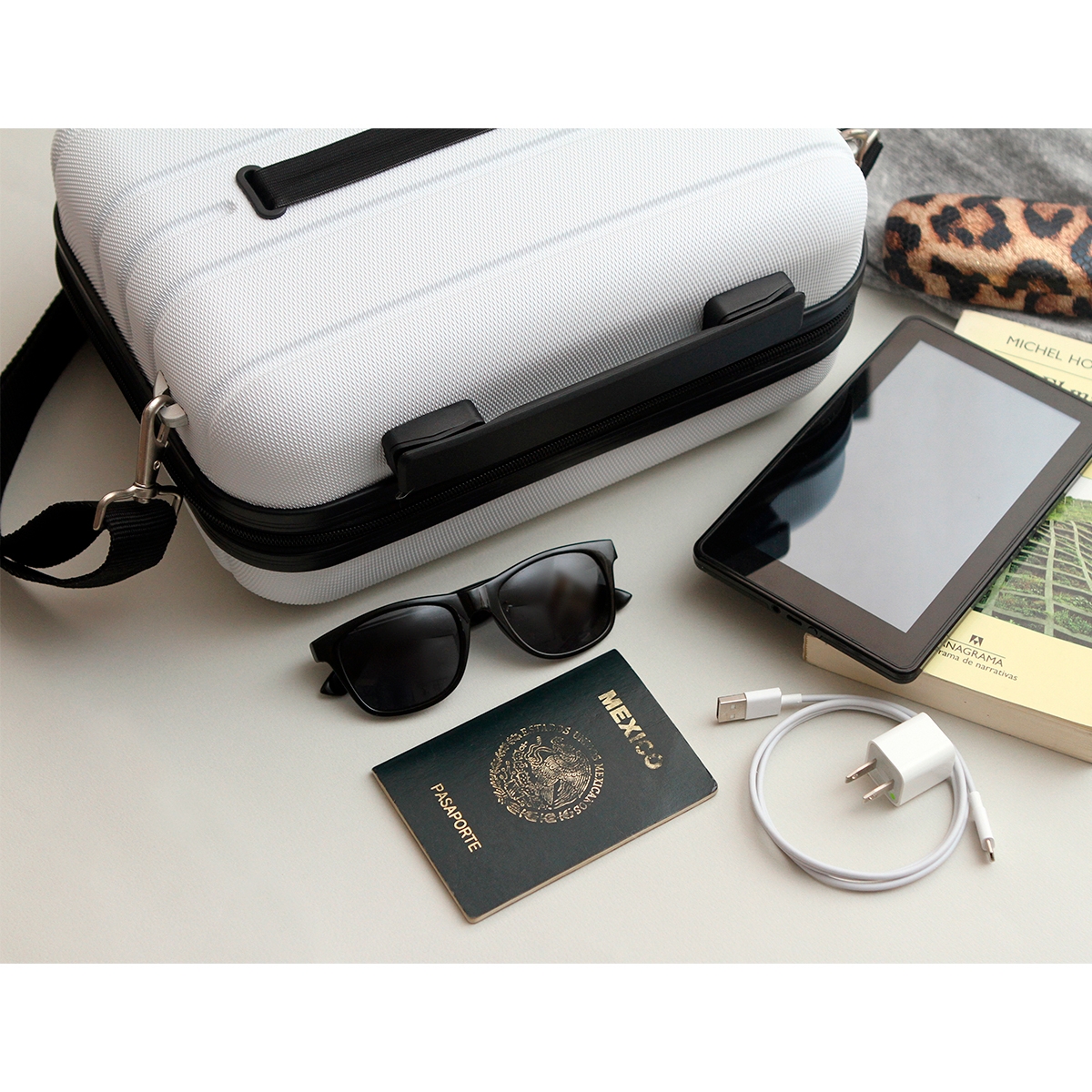 Neceser Narok. - Neceser para viaje fabricado en plástico ABS con interiores de poliéster. Incluye placa metálica para grabado laser, banda elástica, asa superior y correa de hombro ajustable.