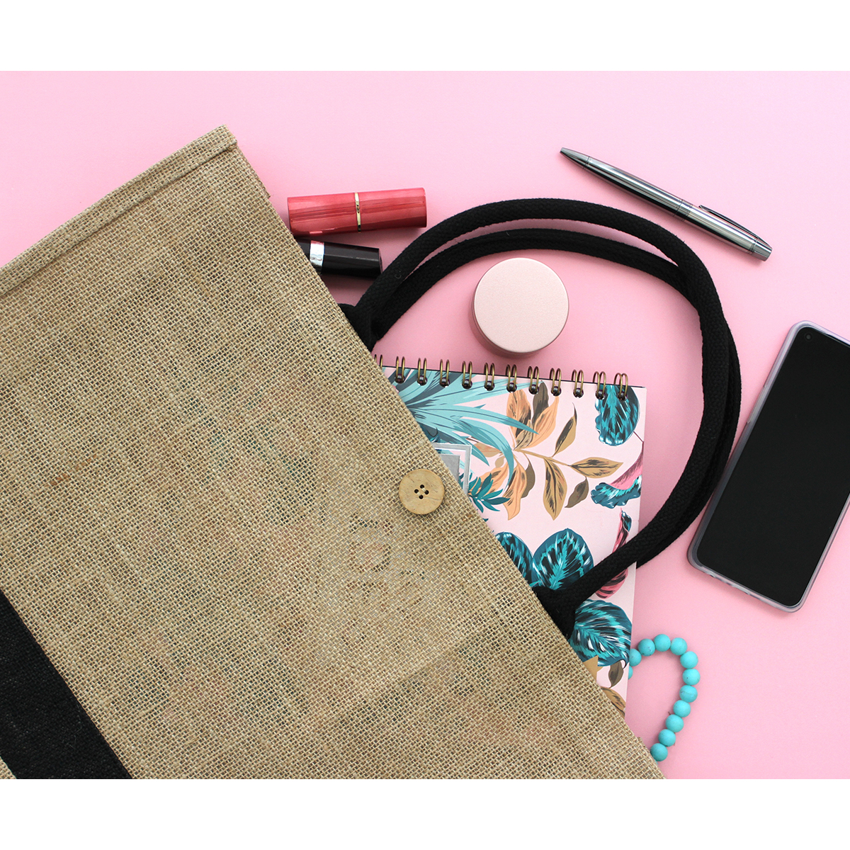 YAM Bolsa de loneta laminada con yute de 1 compartimento con botón para cierre ...