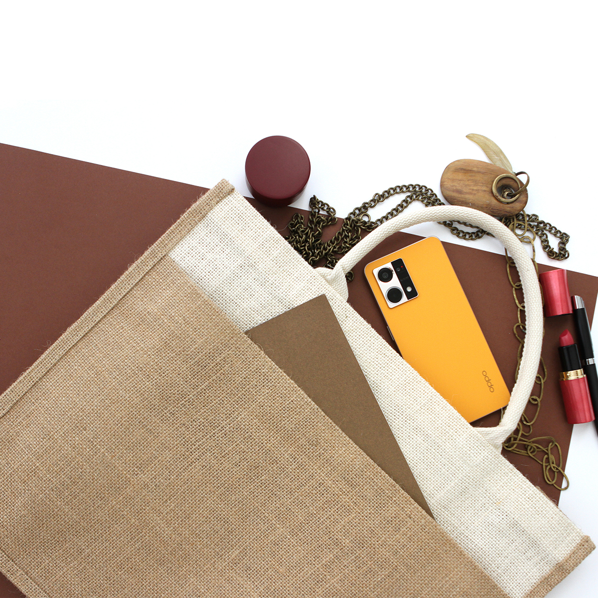 Bolsa Lacchi. - Bolsa fabricada en yute, material natural y resistente que le confiere un aspecto rústico y elegante, con asas cómodas que están fabricadas en algodón, con un compartimiento en la parte frontal, para tener los objetos mas pequeños a la mano, con un diseño bi-tono, lo que significa que combina dos tonos complementarios en su diseño.