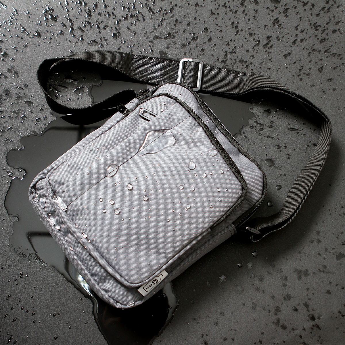 Bolsa de RPET Lozza. - Bolsa multiusos fabricada en poliéster reciclado (RPET) a prueba de agua. Es una opción versátil y ecoamigable para llevar tus pertenencias de manera segura y protegida en diversas situaciones. La bolsa cuenta con dos compartimentos principales espaciosos y un bolsillo frontal con cierre que te permite organizar y guardar objetos más pequeños de forma segura y accesible. También incluye una correa ajustable que te permite llevarla cómodamente al hombro o cruzada en el cuerpo. El RPET es un material resistente y duradero que puede soportar el uso diario y el desgaste, lo que lo hace ideal para productos textiles. Además es sostenible porque utilizan materiales reciclados en su fabricación, lo que reduce la cantidad de residuos y disminuye el impacto ambiental.