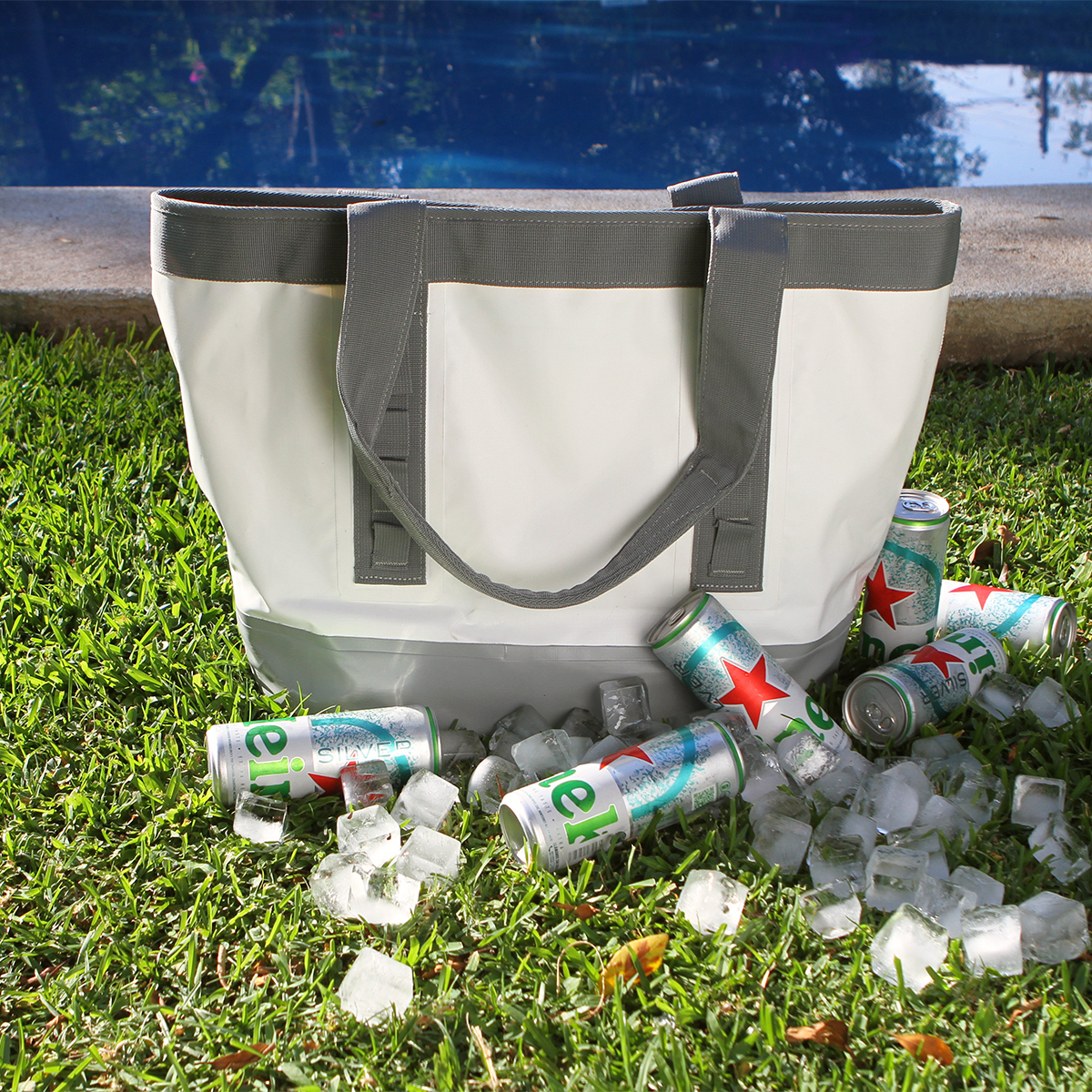 Bolsa hielera Mahooth. - Bolsa impermeable con asas. Fabricada en PVC y poliéster.  Es ideal para playa, piscinas o salidas al aire libre, su forro resistente al agua y su amplio tamaño permite que se utilice como hielera y puedas llevar tus bebidas favoritas a cualquier lado.