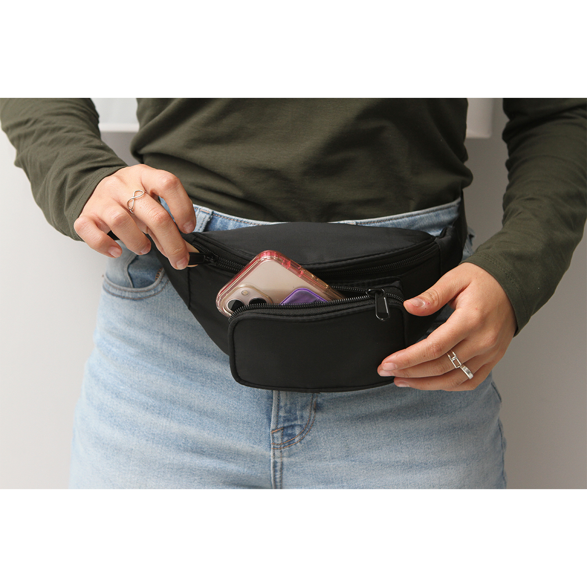 Cangurera Gonnesa. - Bolsa tipo cangurera fabricada en nailon, con tres compartimentos con cierre, ideales para guardar artículos pequeños como audífonos, celular, monedas, lentes, etc.