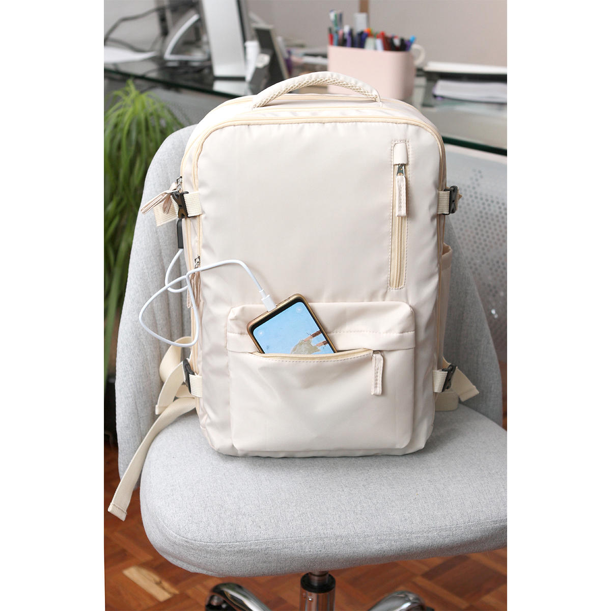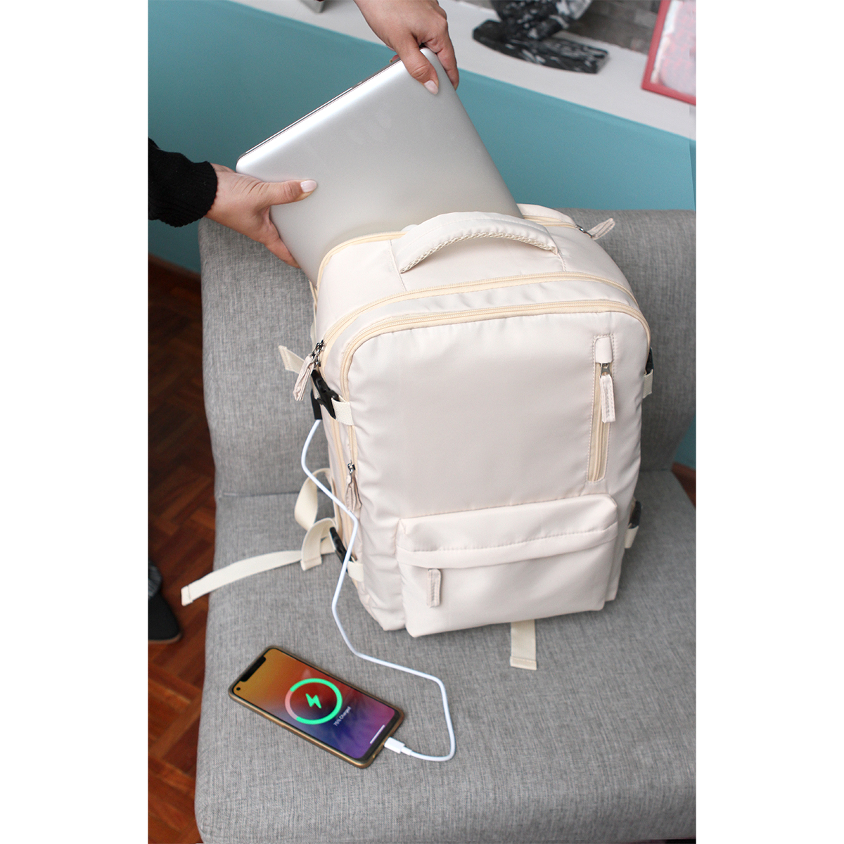 Mochila Marceddi. - Mochila de poliéster 290D, ligera y resistente, con cuatro compartimentos y bolsa acolchada para laptop. Incluye salida de cable para cargar dispositivos y correas ajustables acolchadas para mayor comodidad. Hebillas laterales para ajuste de volumen. Ideal para escuela, trabajo o viaje.