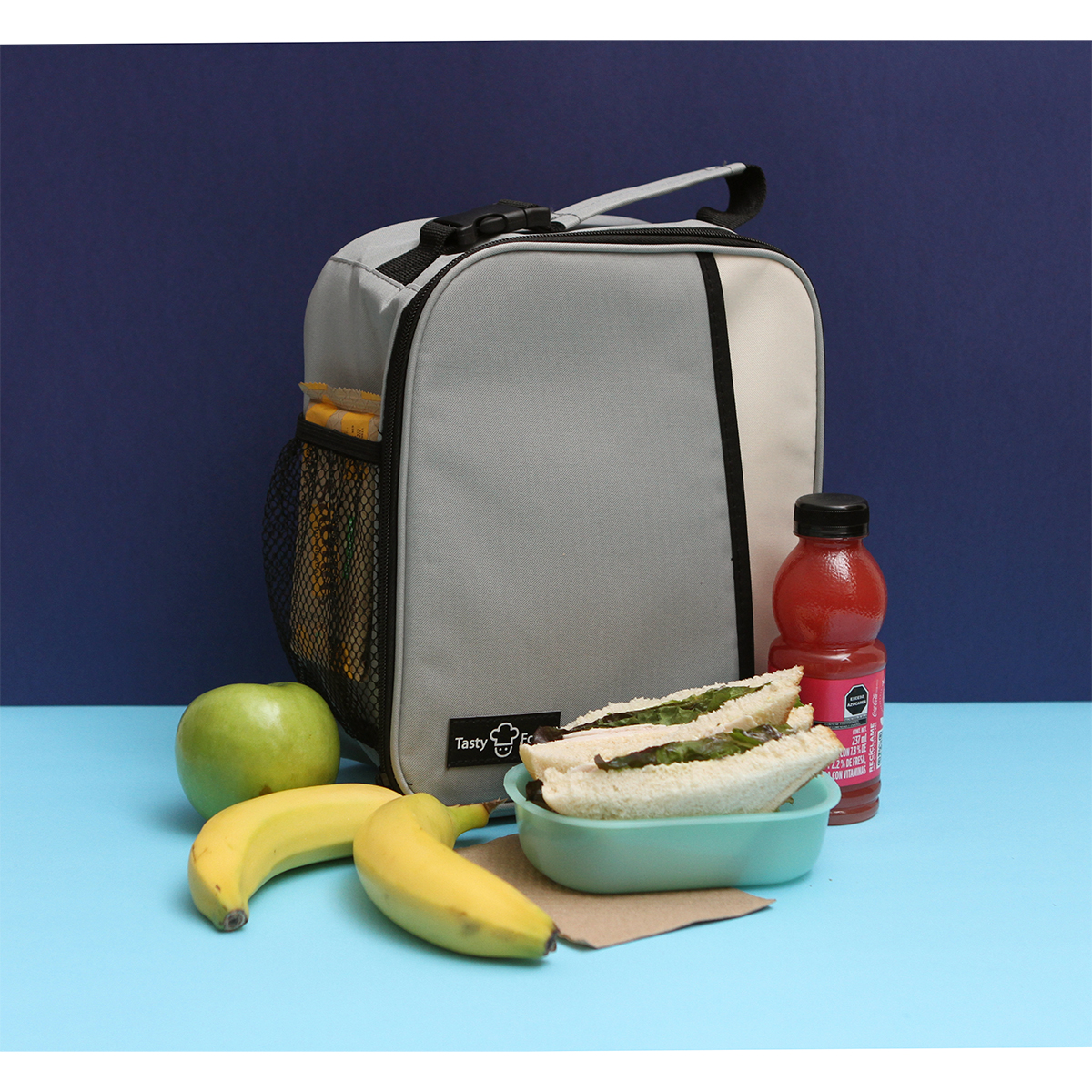 Lonchera térmica Krokom. - Lonchera térmica fabricada en poliéster y papel aluminio, con cubierta de curpiel y diseño bicolor. Incluye asa con broche ideal para colgarla a tu mochila, cuenta con una bolsa de maya lateral, bolsa frontal y un compartimento principal con cierre metálico. Perfecta para transportar alimentos y conservarlos frescos.
