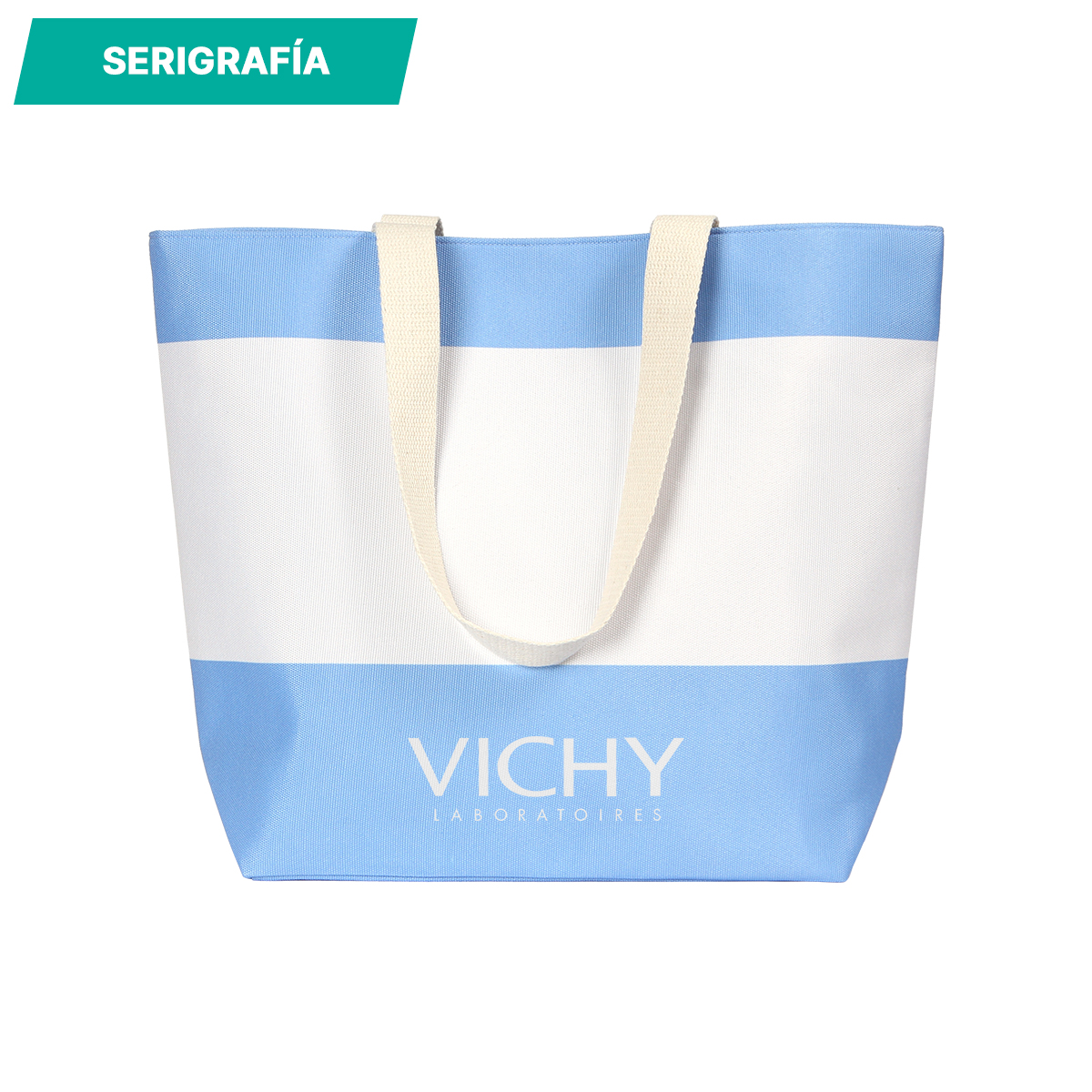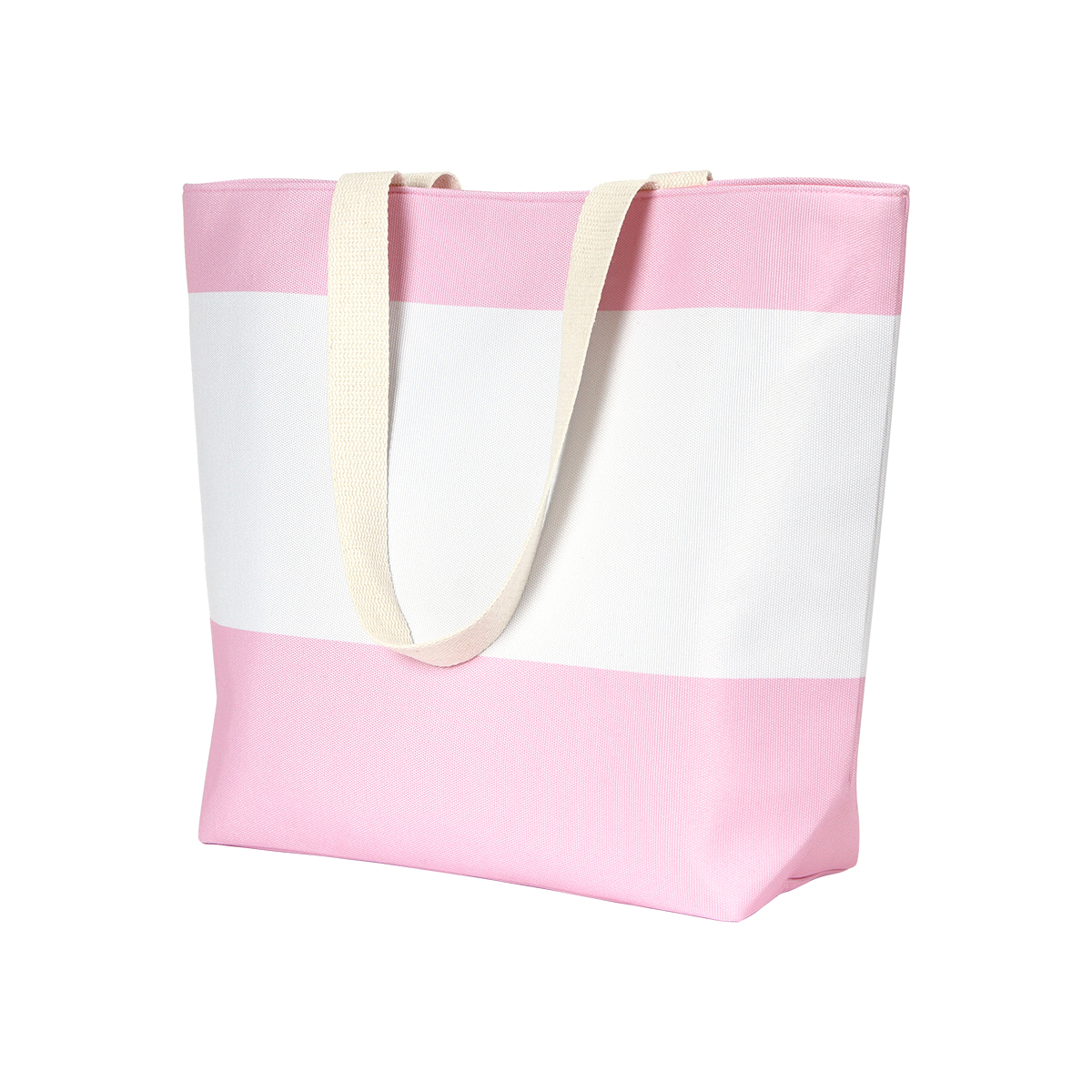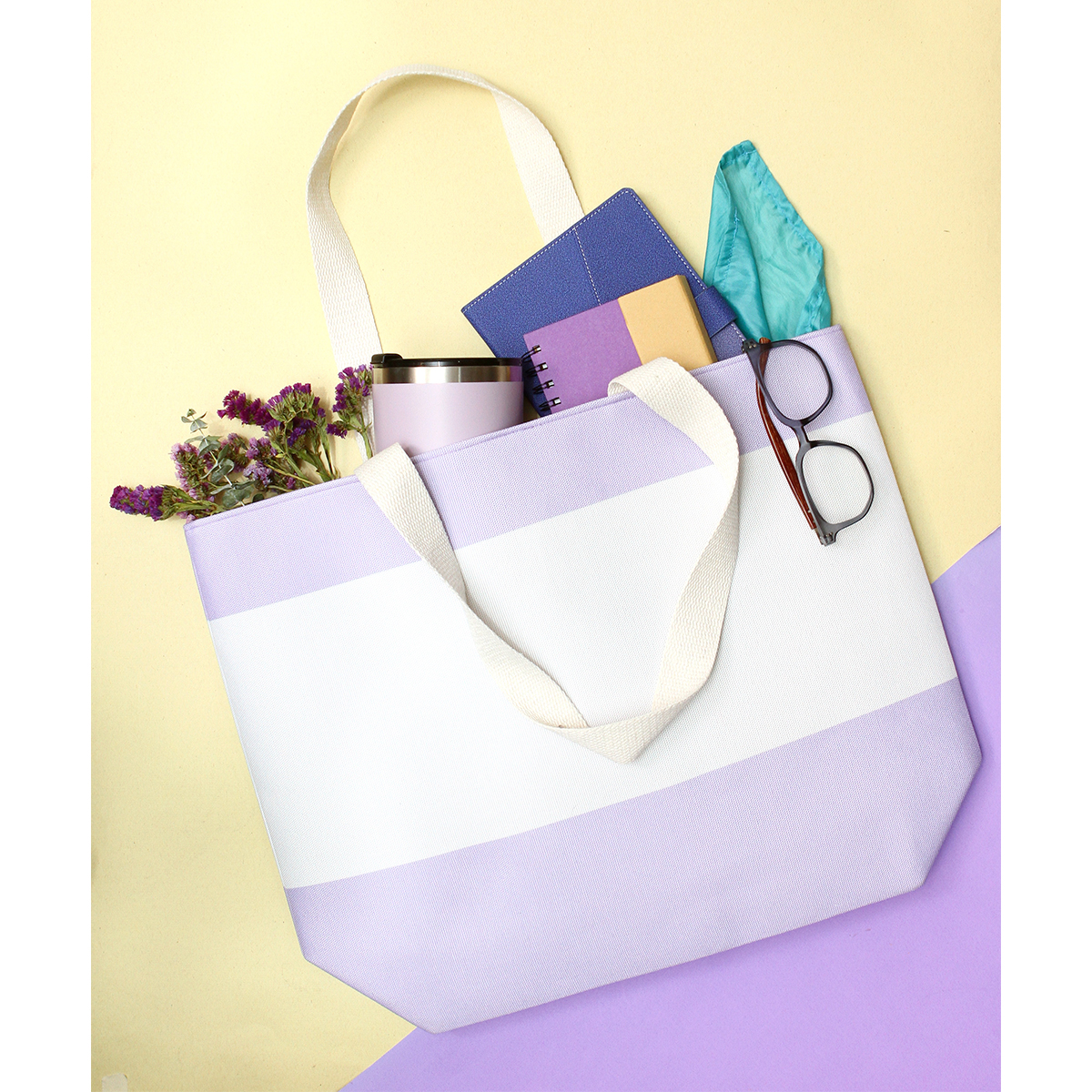 Bolsa Luau. - Bolsa de mano fabricada en tela de algodón y poliéster. Incluye dos asas y diseño a rayas. Su espacio y diseño son óptimos para guardar diversidad de objeto. Su diseño en colores primaverales le hace vistosa.