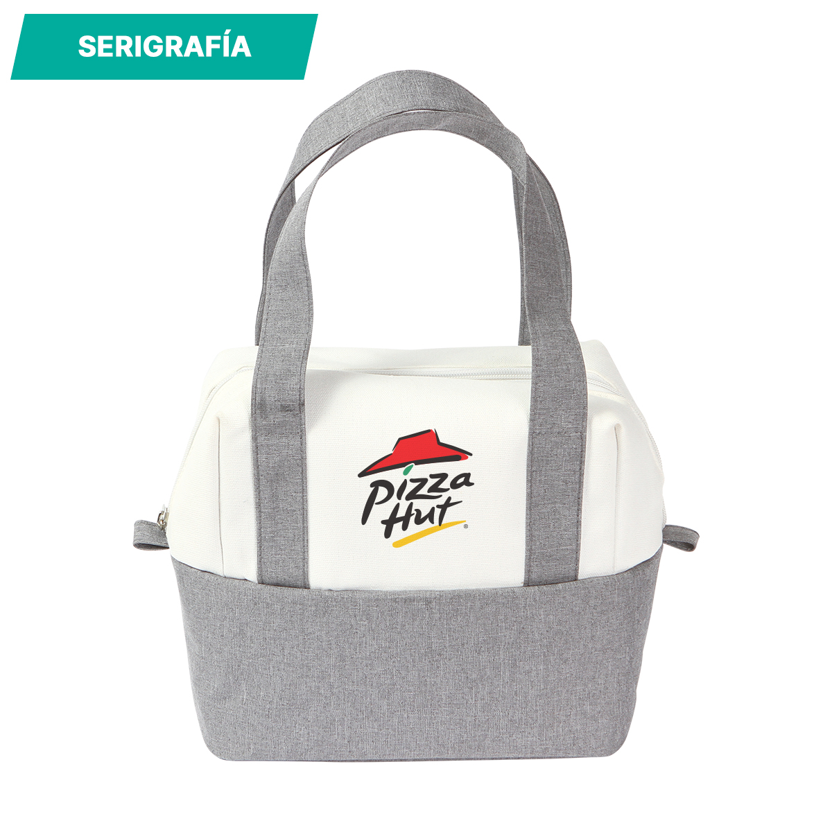Lonchera Purbach. - Lonchera hermética fabricada en poliéster, PEVA y Canvas, con forro interno ideal para llevar tus comidas y bebidas de forma segura y mantener su temperatura durante más tiempo. Cuenta con un compartimento principal con cremallera y dos asas a los lados.