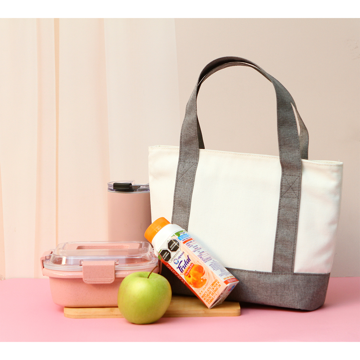 Lonchera Wattens. - Lonchera hermética fabricada en poliéster, PEVA y Canvas, con forro interno ideal para llevar tus comidas y bebidas de forma segura y mantener su temperatura durante más tiempo. Cuenta con un compartimento principal con cremallera y dos asas a los lados.