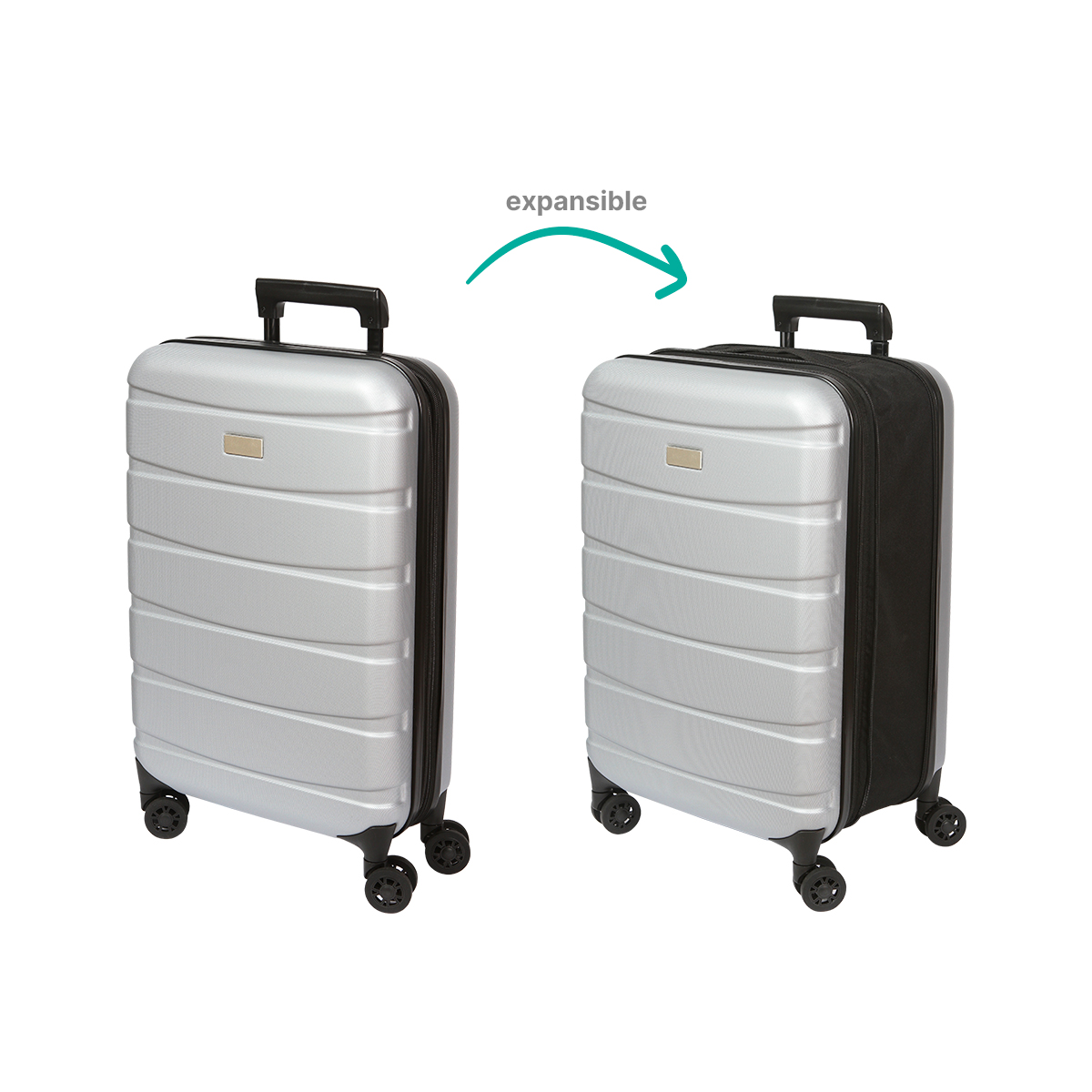 Maleta Sétif. - Maleta de viaje fabricada en plástico tipo ABS, con diseño en rayas y forro de poliester. Esta maleta está diseñada para soportar los rigores de los viajes y proteger tus pertenencias de manera efectiva. Contiene 4 llantas giratorias que te permiten desplazarte sin esfuerzo en cualquier dirección y agarradera desplegable en la parte superior, la cual puedes ajustarla a la altura deseada. Además es expansible, aumenta su tamaño para viajes más largos, o si necesitan transportar más artículos.