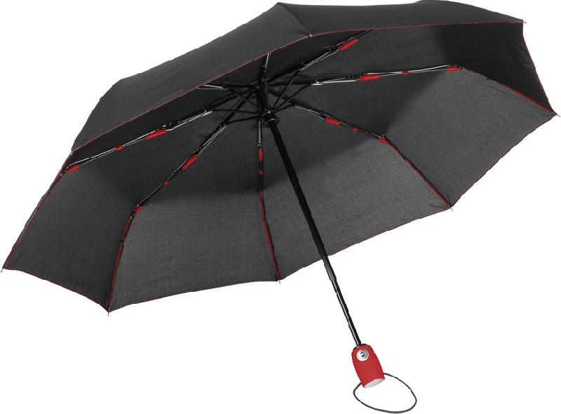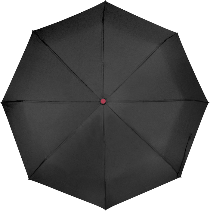 PARAGUAS "PÓLUX" Paraguas automático con sistema antiviento. Eje metálico y varillas de fibra de vidrio de color. Mango de goma de color. APERTURA Y CIERRE AUTOMÁTICO . Sujetador elástico. Funda de poliéster con costura de color. Longitud del eje: 54.5 cm