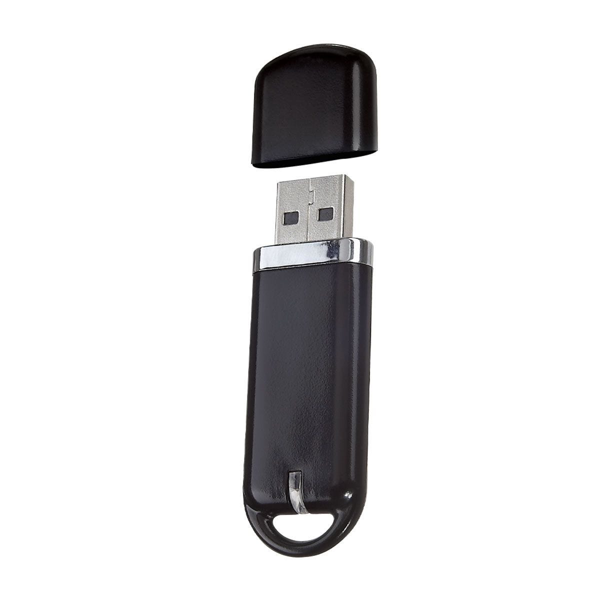 USB DELUXE 4GB Memoria USB con detalles en curpiel negro y cromo, cuenta con mi...