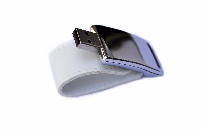 USB CLIP PIEL USB metálica con acabado cromado y clip envolvente de piel con imán. Dimensiones 11.5 × 2.5 × 1 cm Color Blanco, Negro Capacidad GB 8 GB Material Piel, Metal