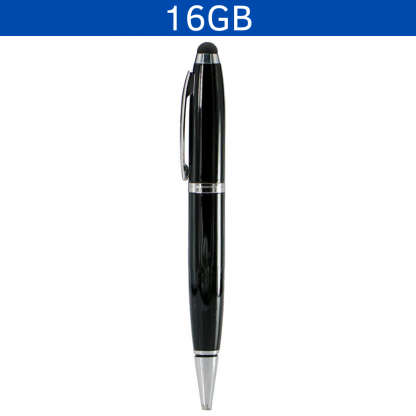 USB PEN STYLUS 16GB. Memoria USB multifuncional con bolígrafo tinta negra y cuerpo de metal, cuenta con puntero táctil de silicona que evita rayones en dispositivos touchscreen.