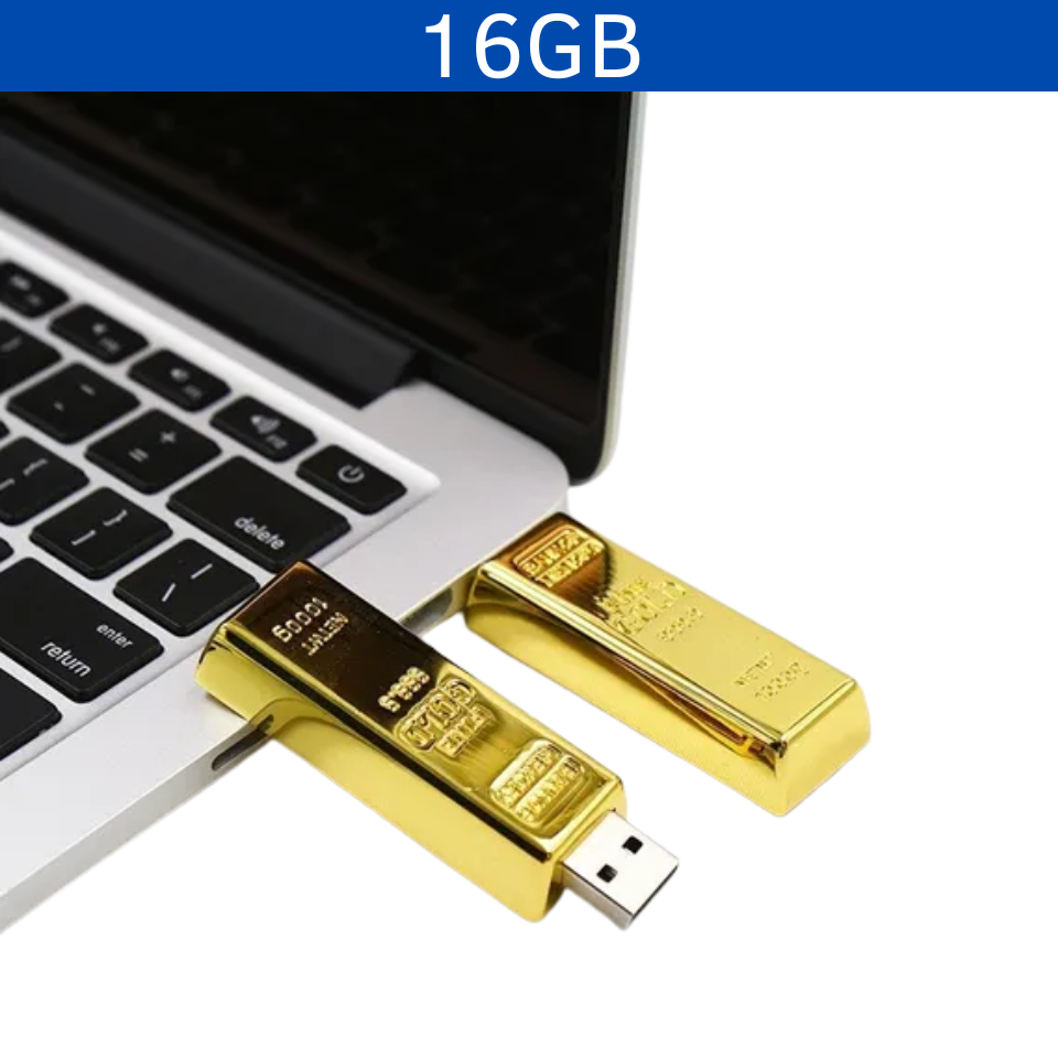 USB LINGOTE ORO 16GB Memoria USB con forma de lingote de oro. Botón deslizable para usar la USB.