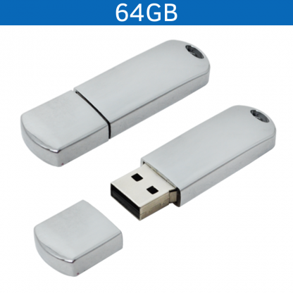 USB IRON 64GB. Memoria USB fabricada en metal con acabado cromado, puede usarse con llavero. Versión 2.0