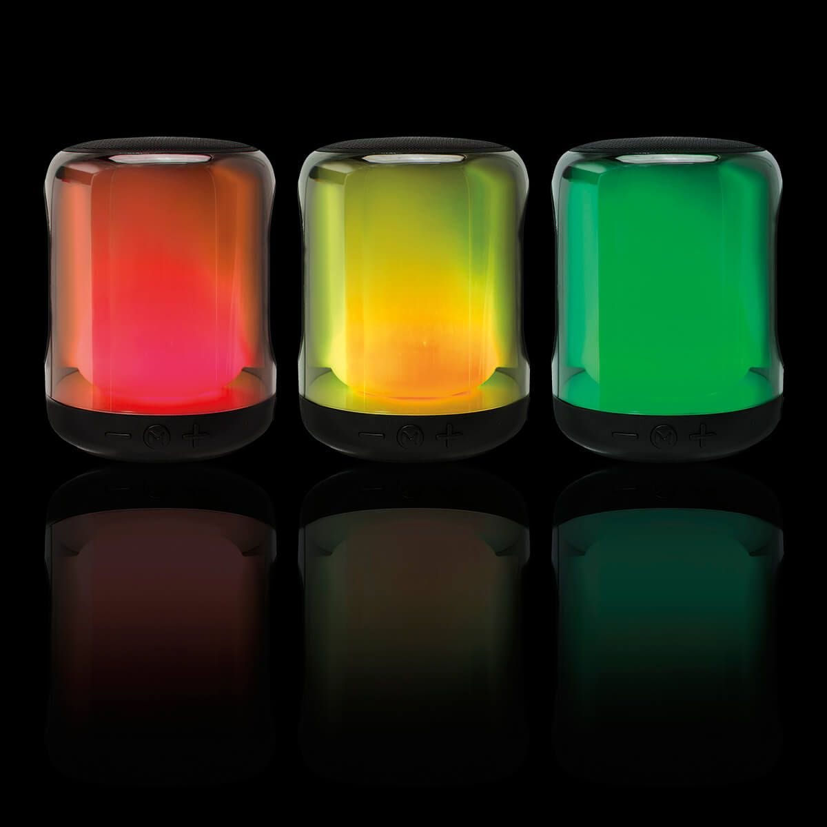 BOCINA FENRIR - Bocina bluetooth recargable con luz RGB ajustable a 10 efectos diferentes. Reproducción de música 4 hrs aproximadamente. Rango de conexión 10 metros. Cuenta con puerto para tarjeta TF, puerto USB, puerto auxiliar 3.5 mm y puerto tipo C. Radio FM. Incluye cable cargador USB.