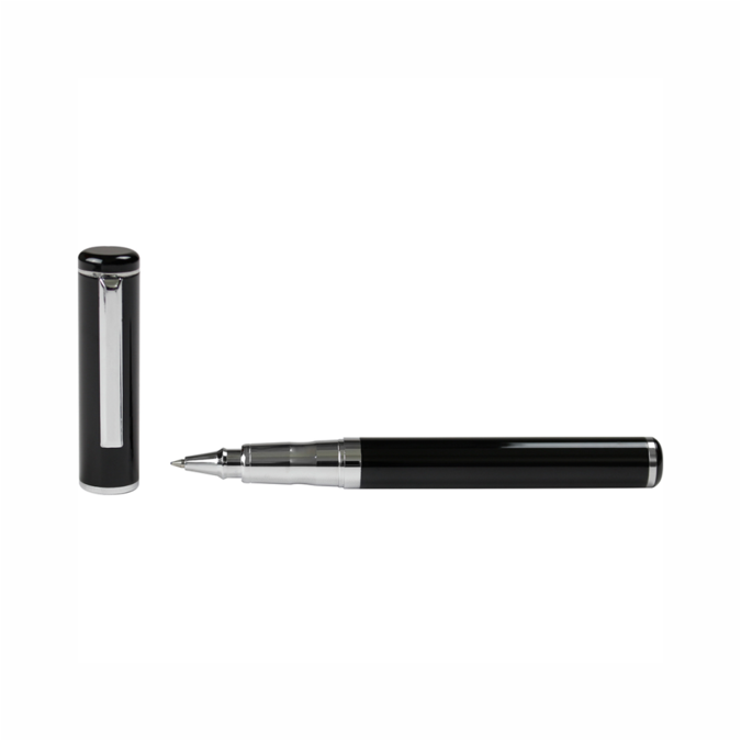 Magic Bolígrafo metálico con detalles negros y plata. Tapón de color con pode...