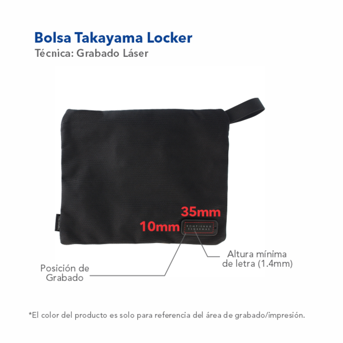 Bolsa Takayama Locker Material POLIÉSTER Ancho de Caja 26 cm. Peso por Caja 15 kg. Alto del artículo 19 cm. Fondo del artículo 2 cm. Largo de Caja 41 cm. Alto de Caja 37 cm. Piezas por Caja 100 Pzas. Ancho del artículo 23.5 cm.