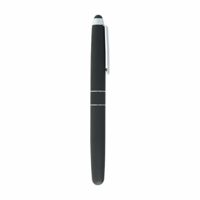 Dakar Touch Bolígrafo metálico con tapón que cierra a presión. Detalles color cromo. Mismo diseño que el bolígrafo Dakar, pero con touch en la punta del tapón. Escritura de alto desempeño debido a su repuesto japonés tipo roller (a elegir entre tinta negra o azul). Incluye estuche individua