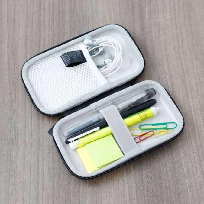 Estuche Multiusos Fugu Estuche rígido portátil marca TAKAYAMA. A prueba de golpes y resistente a la presión. Tira cierre con marca presente. Recomendado para organizar artículos pequeños, como auriculares, cables, tarjetas de memoria, power bank, adaptadores, USB, etc. Bolsa interior con malla y banda elástica de sujeción para llevar todos tus accesorios organizados. Suave tela interior que ofrece eficaz protección evitando rayaduras