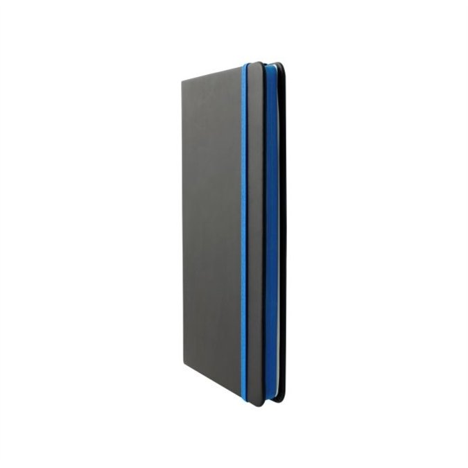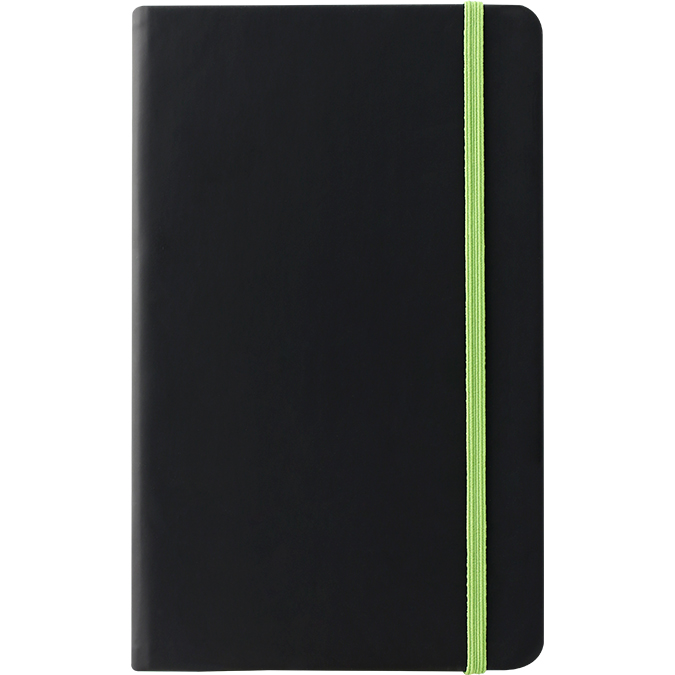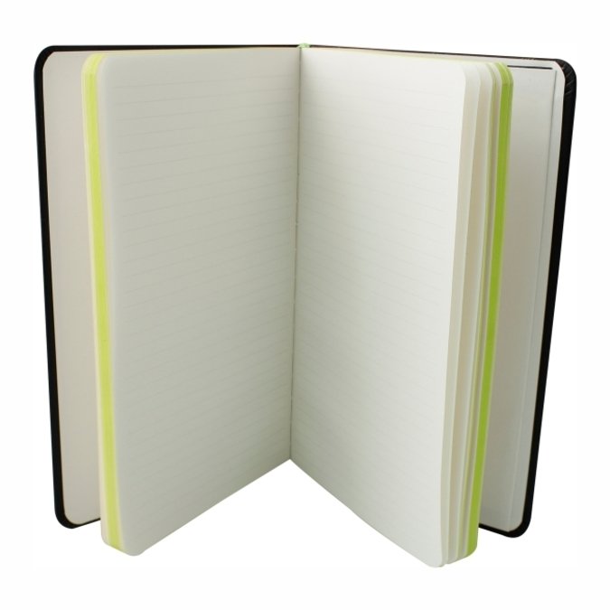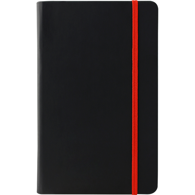 Libreta Border Black Libreta 80 Hojas Raya, papel óptico Silky proveniente de bosques sustentables. Suave Cubierta satinada color negro. Toque de color unificado en: canto, cierre elástico y separador de listón. Con sobre de papel en contraportada. Pegada y cosida. Se entrega plastificada para garantizar la protección, y mejorar la presentación de cada una de las piezas.