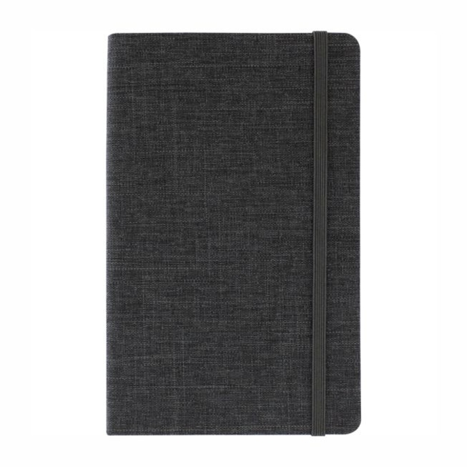 Libreta Fabrix Libreta 80 Hojas Raya, papel óptico Silky proveniente de bosques sustentables (Cuenta con certificación PEFC). Cubierta de cartón forrado en tela. Con sobre de papel en contraportada. Separador de listón y elástico para cierre en combinación con color de cubierta. Libreta cosida. Se entrega plastificada para garantizar la protección, y mejorar la presentación de cada una de las piezas.