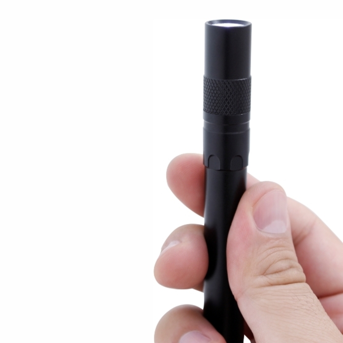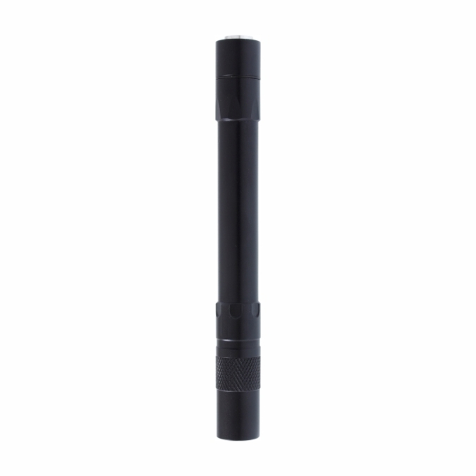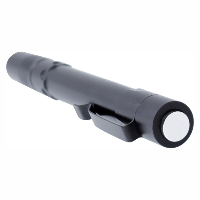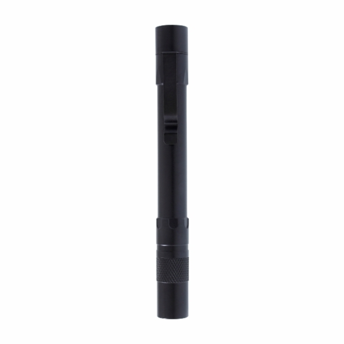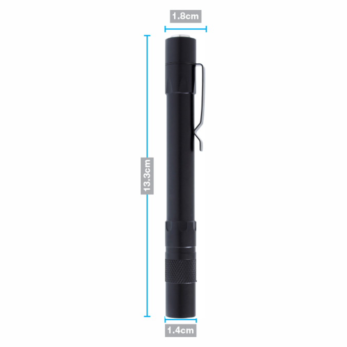 Linterna MRI Linterna de bolsillo fabricada en aluminio torneado. Cuenta con Clip para sujetarla al bolsillo. Luz led de alta luminosidad que se acciona con un botón en la parte superior. Funciona con 2 baterías AAA (No incluidas).