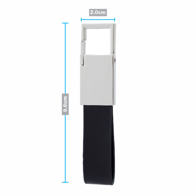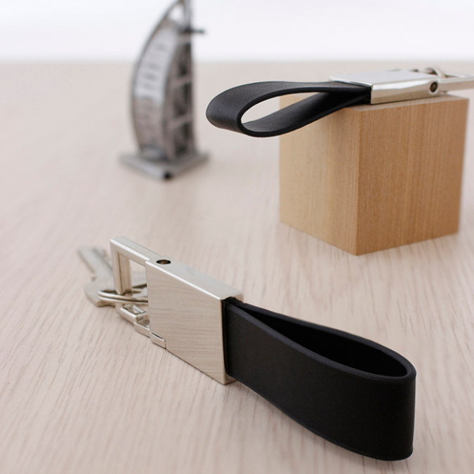 Llavero Cuadro Atractivo llavero de diseño sencillo y elegante. Destaca por la combinación de materiales: curpiel color negro y herraje metálico con apertura en 2 pasos. Incluye estuche individual.