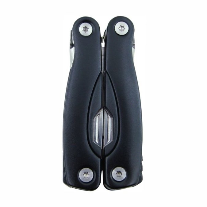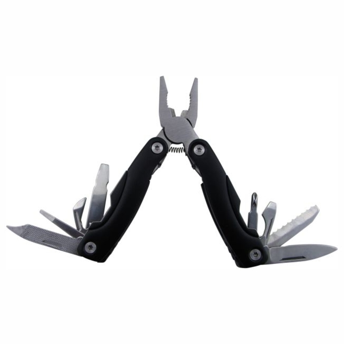 Pinzas Mini Dansk Igual que la Dänks, pero de menor tamaño, son ideales como herramienta de bolsillo. 9 en 1: Pinza de uso general, en cuyos mangos encontramos un par de navajas de diferente tamaño y forma, desarmadores (cruz y plano), abre latas y lima de uñas. Fabricada de acero inoxidable con terminados de aluminio en los mangos. Es plegable para su fácil transportación. Incluye estuche individual.