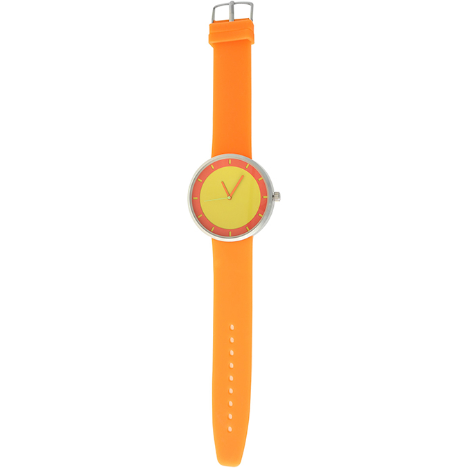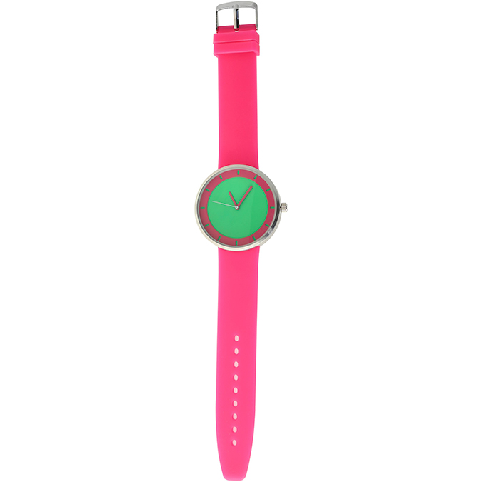 Reloj Neón Reloj de pulso disponible en color naranja, verde, rosa y azul. Extensible de silicón que permite decorado en bajo relieve. Bisel y tapa metálicos. Incluye estuche individual y baterías.