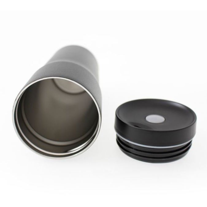 Termo Scandia Termo de acero inoxidable con doble pared en acabado “Rock” (Texturizado y súper resistente). Tapa con cierre de rosca habilitada con un botón, que permite bloquear o liberar el líquido contenido. Producto libre de BPA. Se entrega en caja de cartón individual. Capacidad: 450 ml. Lavar antes de usar.