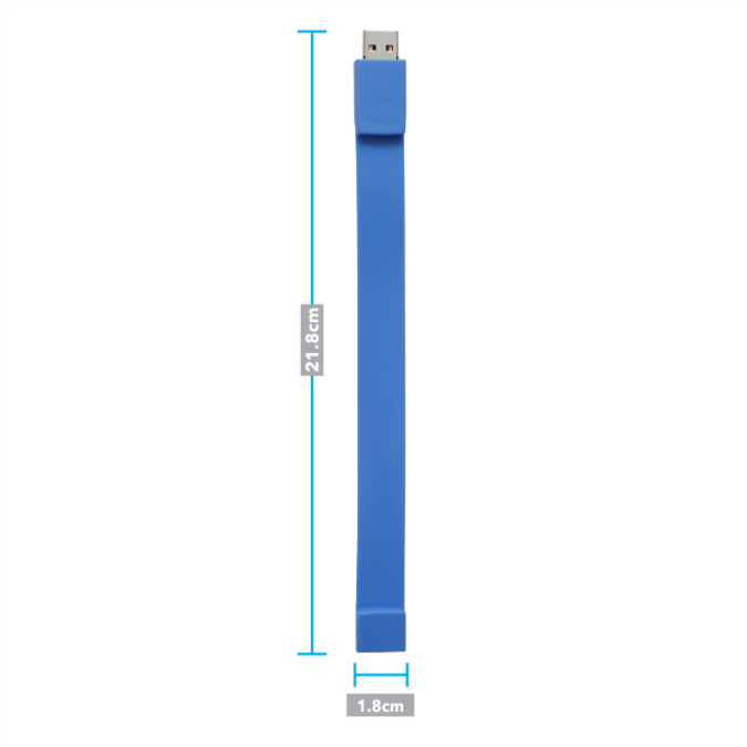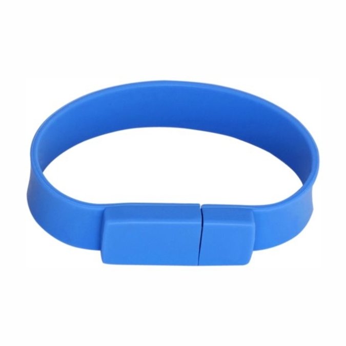 USB Pulsera 8GB USB de 8GB con cuerpo de silicón. La usb funciona como broche para que tome la forma de pulsera. Decorado en bajo relieve. Se entrega en bolsa individual de plástico.