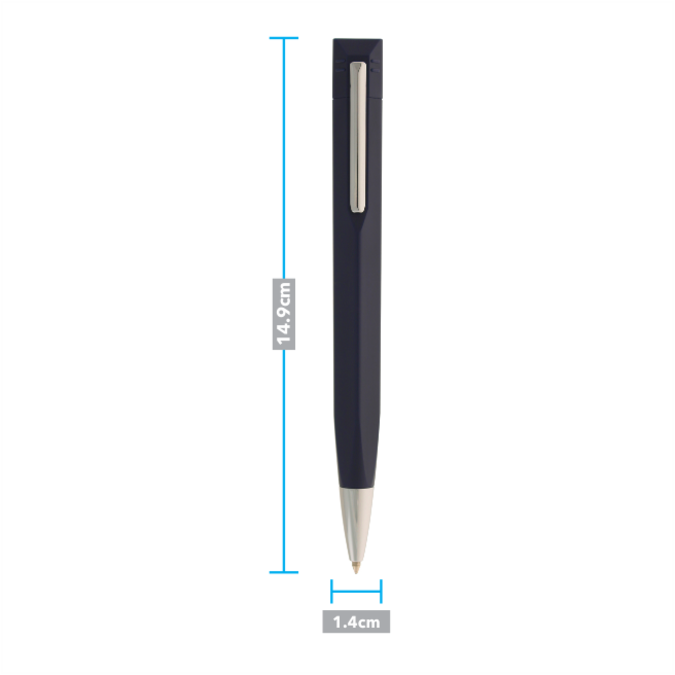 USB Tech Pen 8GB Ligero y manejable bolígrafo de plástico con cuerpo cuadrangular y detalles color cromo. Cuenta con USB de 8GB que se desprende de la parte superior del bolígrafo. Mecanismo de giro desde la punta. Tinta Negra. Incluye funda de terciopelo negra.